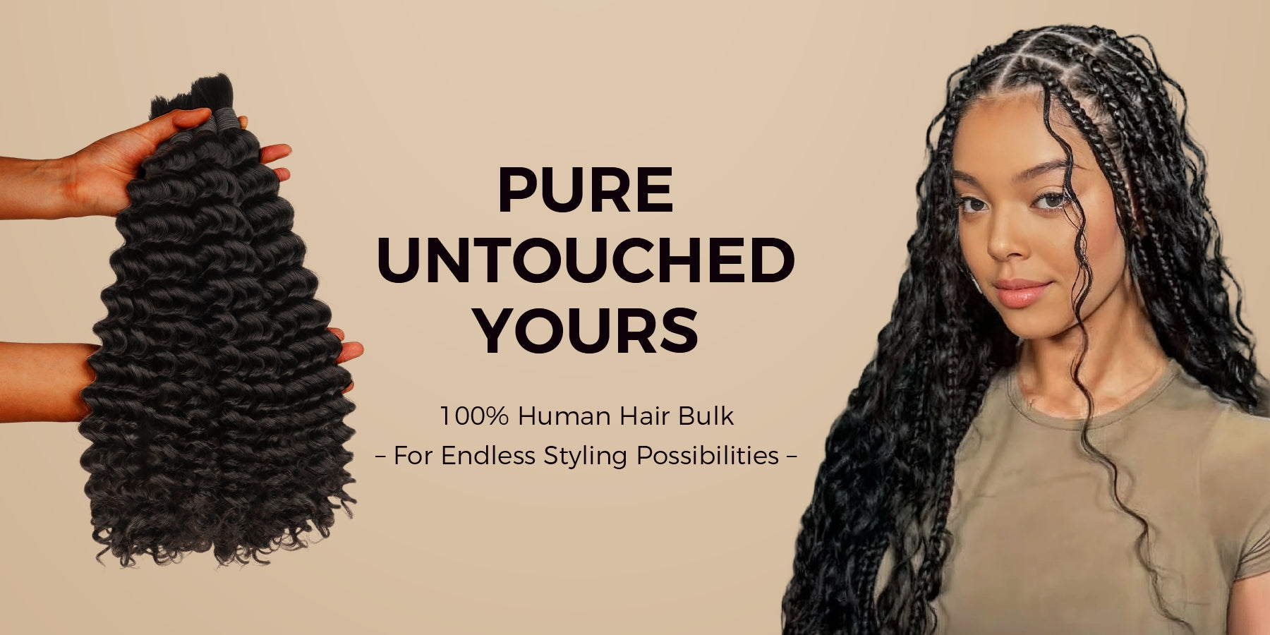 100% unprocessed virgin human hair for soft, knotless bohemian braids. This super double-drawn bulk hair offers consistent thickness from top to tail, minimal shedding, and holds curls beautifully. Free of chemicals and odor, it can be straightened, dyed, or bleached. Perfect for versatile styling and reusable with proper care.