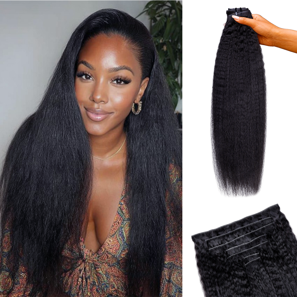 Lashey Super Natural Invisi Edges Kinky Straight clip-in hair extensions are expertly crafted to mimic hair growing naturally from your scalp. Each strand is hand-tied onto the weft for a seamless, undetectable finish that blends flawlessly with your own hair. Made from premium human hair, these extensions are soft, silky, and resistant to tangling. It can be dyed, styled, and used with heat tools just as you would with your natural hair. Say goodbye to bulky clips—our innovative design features secure, slim, and ultra-lightweight clips that lie perfectly flat against your head for a comfortable, barely-there feel. With just a simple 3-step installation, you’re ready to go in minutes.