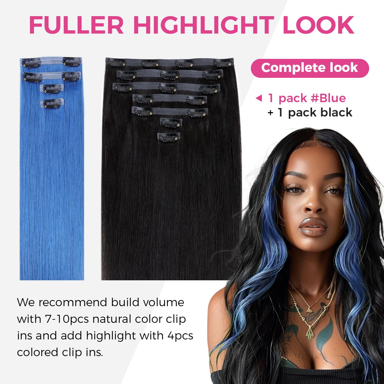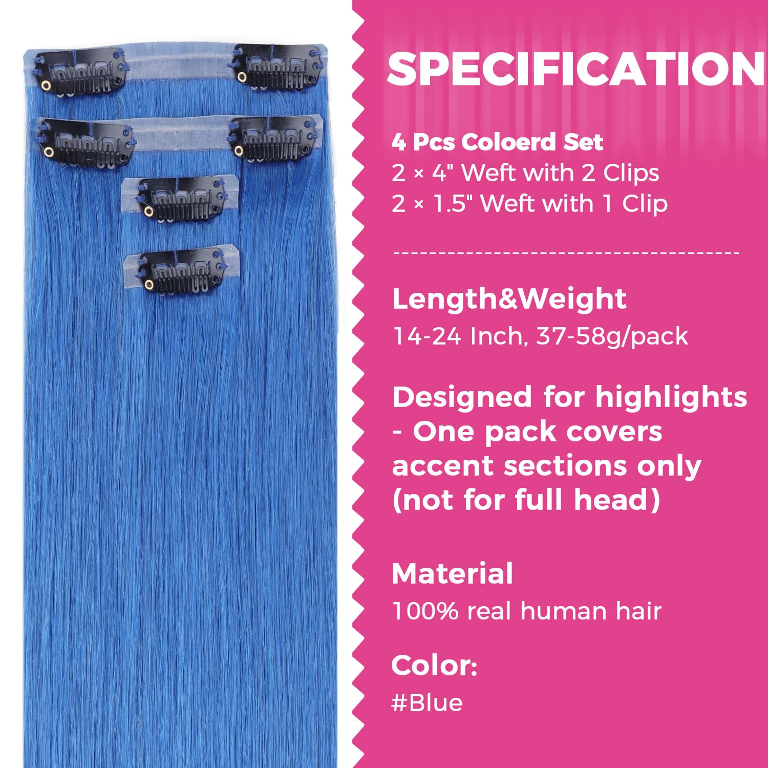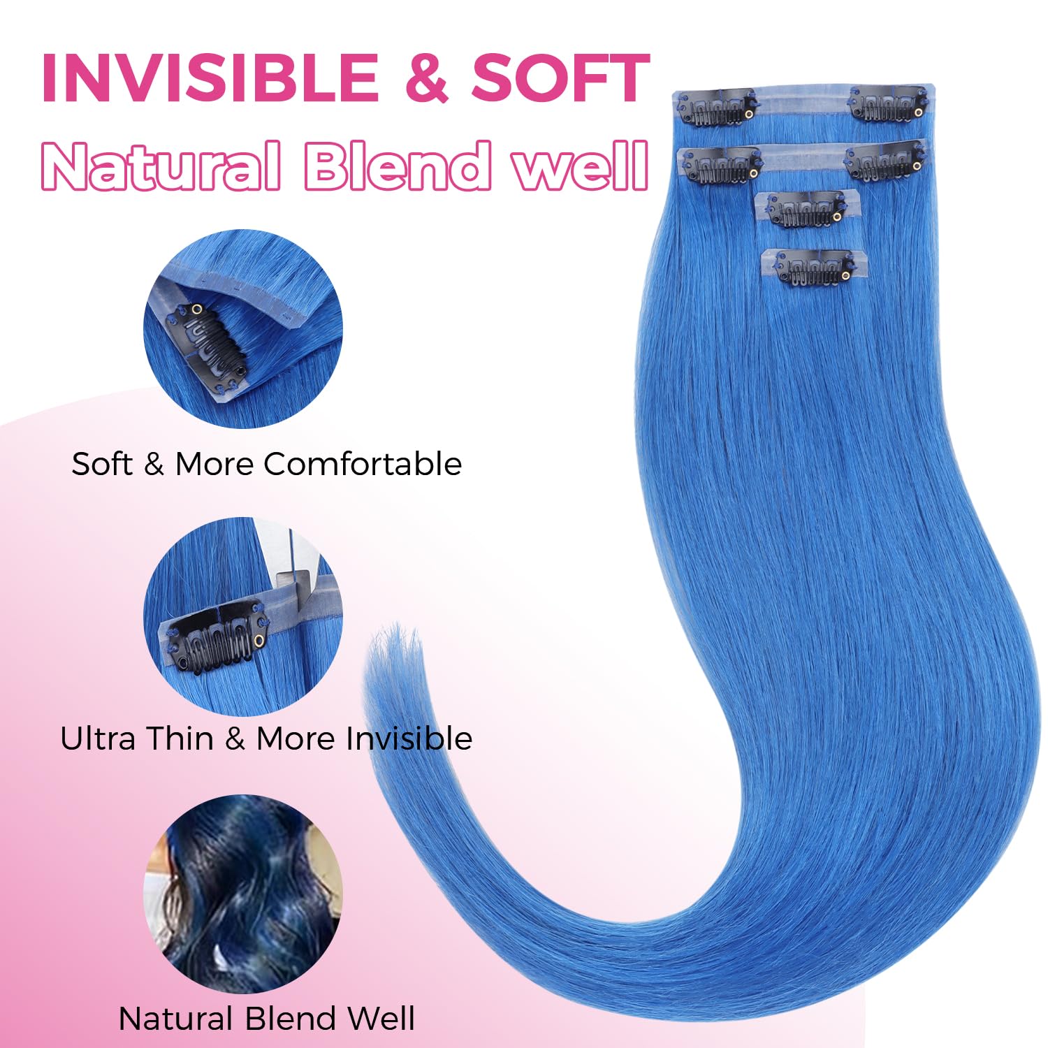 Final Sale | 22" 4pcs Seamless Clip in Blue Silky Straight Hair Extensions-US Only