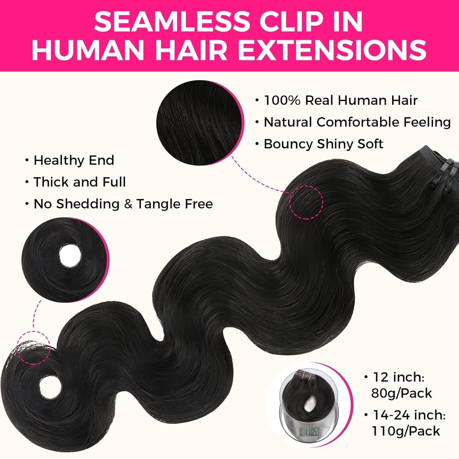 Add on Items | 24" Seamless Clip in Body Wave Hair Extensions (110g)