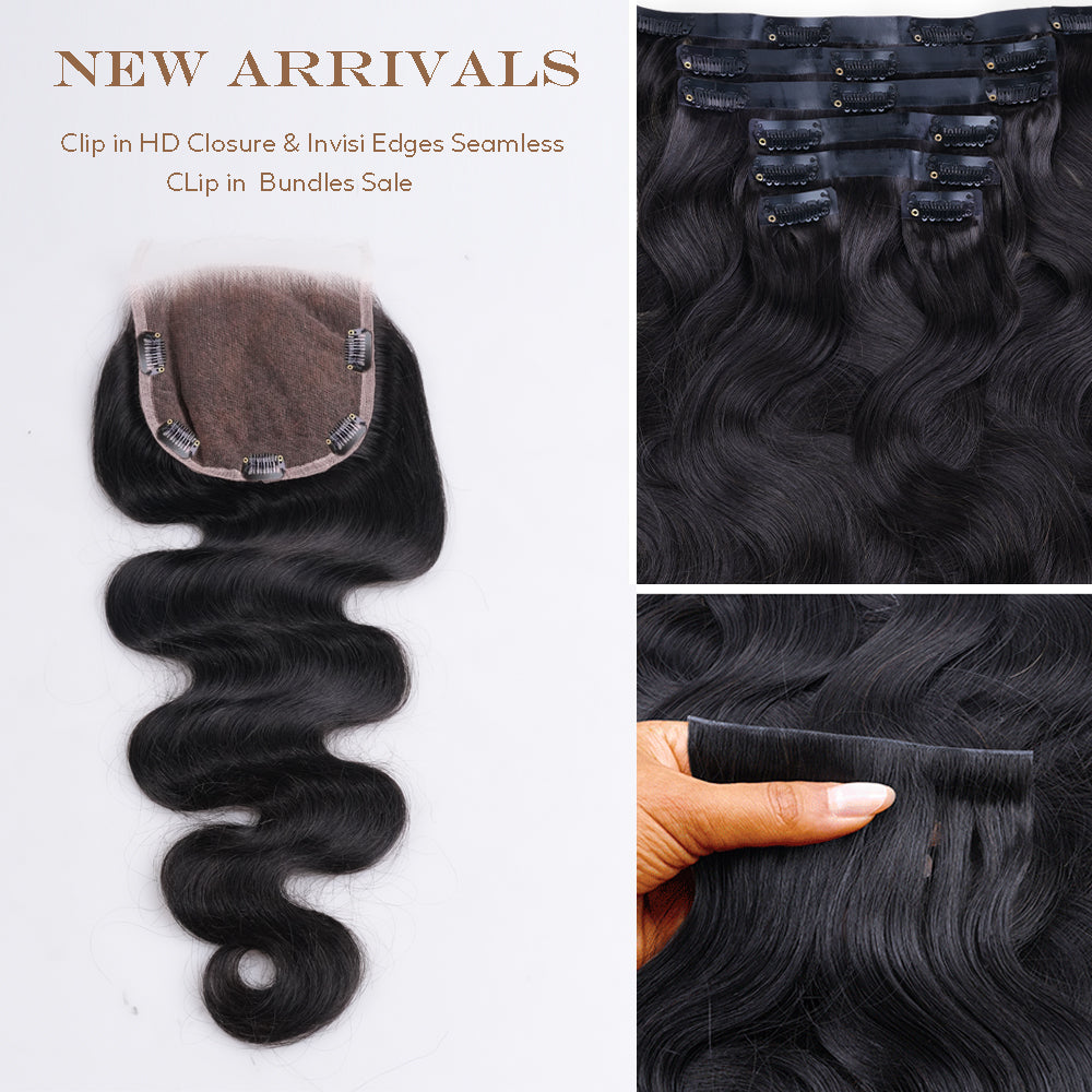 Lashey Body Wave Clip in 5X5 HD Closure | Invisi Edge Seamless Clip ins