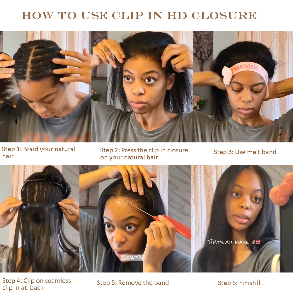 - Type: Clip in 5X5 HD Closure, 110g Invisi Edge Seamless Clip-ins