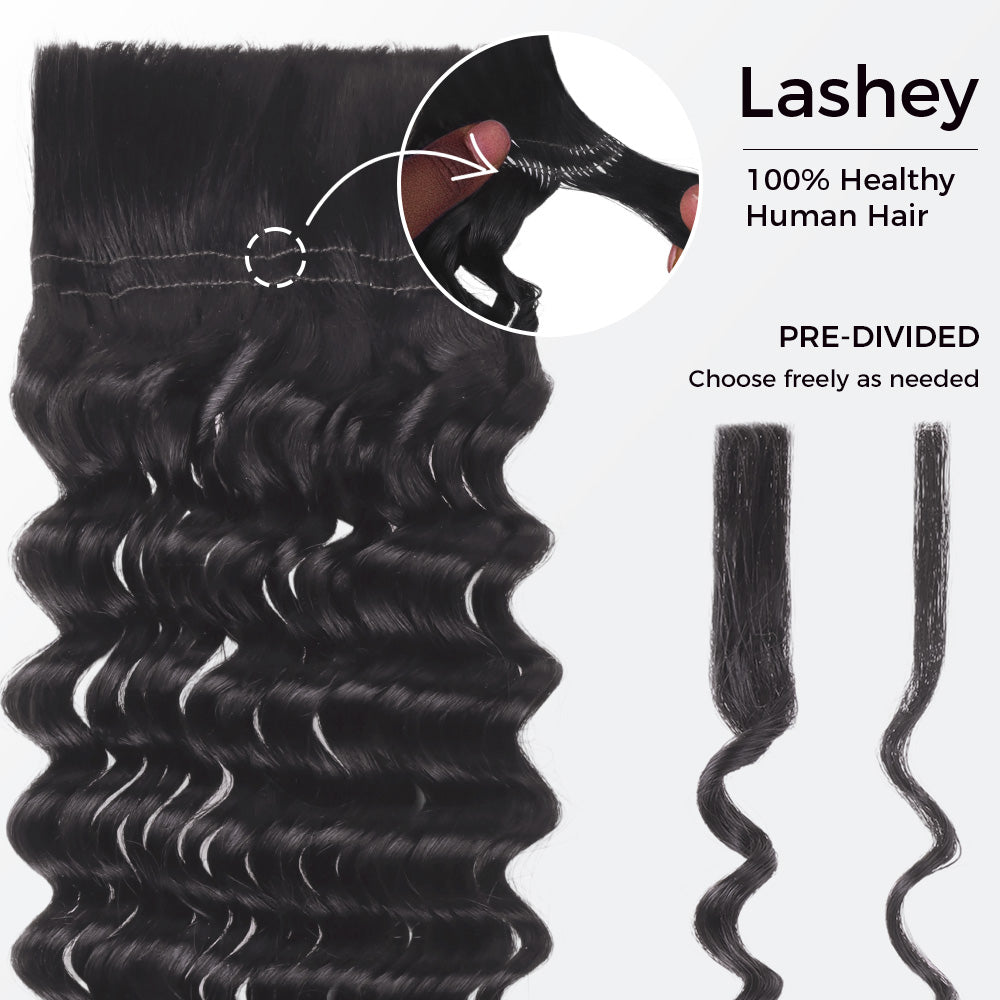 Lashey Human Hair Bulk Deep Wave for Boho Braiding is made from premium Brazilian hair with no split ends or damage. Unprocessed and chemical-free, it's healthy, tangle-free, and odorless with natural shine. Perfect for braiding, the no-weft design allows easy separation and installation. The soft, bouncy hair holds styles well and blends seamlessly. Can be permed, styled or straightened, lasting months with proper care. Each 100g pack contains two 50g bundles in 16-26 inches (true-to-length). Recommended 3 packs for full head. Ideal for knotless braids, boho braids, locs and twists to add length and volume.