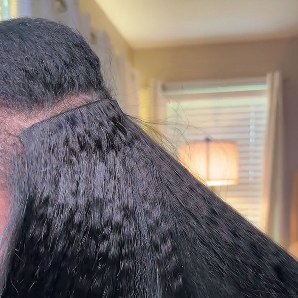Experience the revolution in hair extensions with our Kinky Straight Invisi Edge clip-ins. Engineered to be ultra-slim and feather-light, they lie perfectly flat against your scalp for a seamless, 'grown-from-your-roots' look. Forget about bulky clips and awkward exposure—these blend invisibly with your natural hair in just three simple steps, offering effortless volume and a barely-there feel all day.